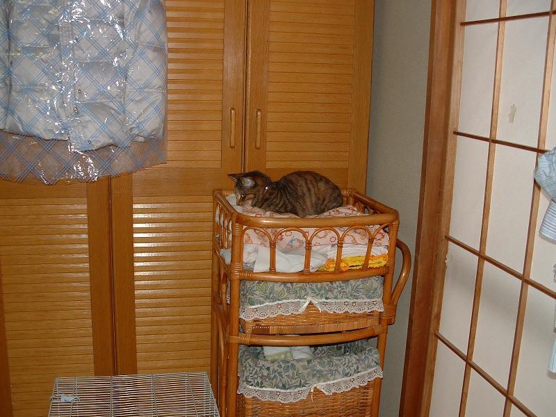 もう、まわりとも、洗濯籠の上とも一体化してます