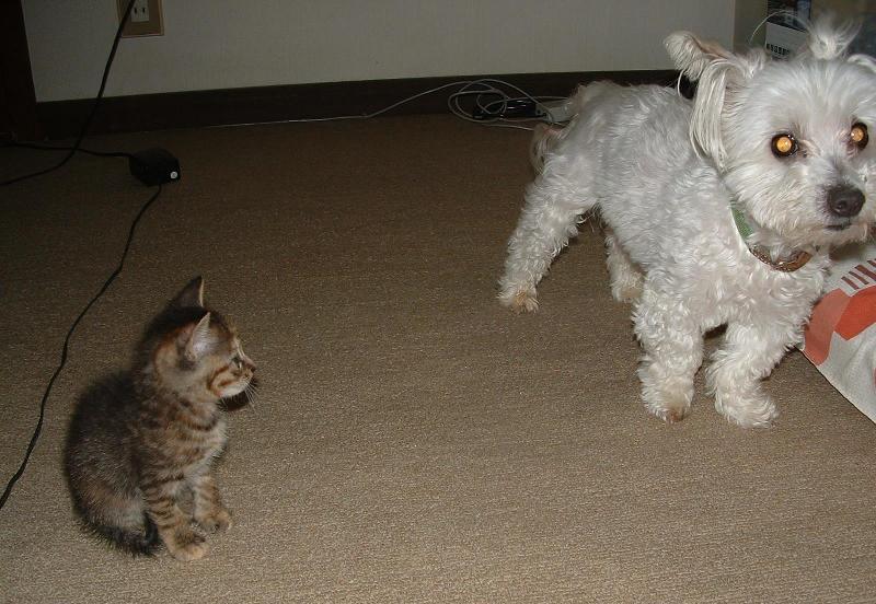 今日はコロちゃんとのご対面の時です。最初、どうしていいかわからないコロ