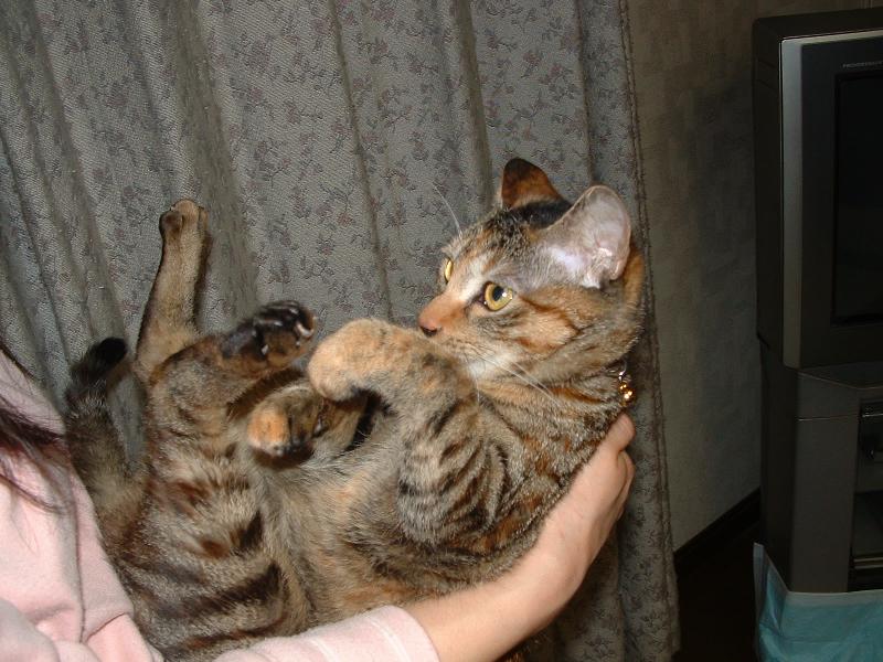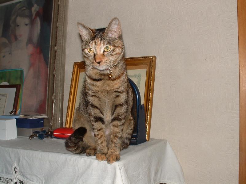 (みくちゃんの回想コーナー・1)里親募集で(ここぬこさんのガレージに野良猫が子を生んで)2006年6月4日に(4月生まれ日にち謎)東京から電車に乗ってもらってきたのを駅で待っていて、そのまま約していた動物病院に連れて行き、受付嬢に「まあ、きれいなねこちゃんね、キジトラだけではないんじゃないアビシニアンも入ってるんじゃない、きれいね~」といわれ、沢山の猫ちゃんを見ている受付嬢にいわれ、その気になったが、その場のお世辞ではないことを祈りながら診察室へ、「ノミもいないし、虫もいませんよ、」,とりあえず家に連れて行き、家族になりました。よくみかける赤ちゃんとはちょっと違ってチャーミングで大人っぽかったのを覚えています。